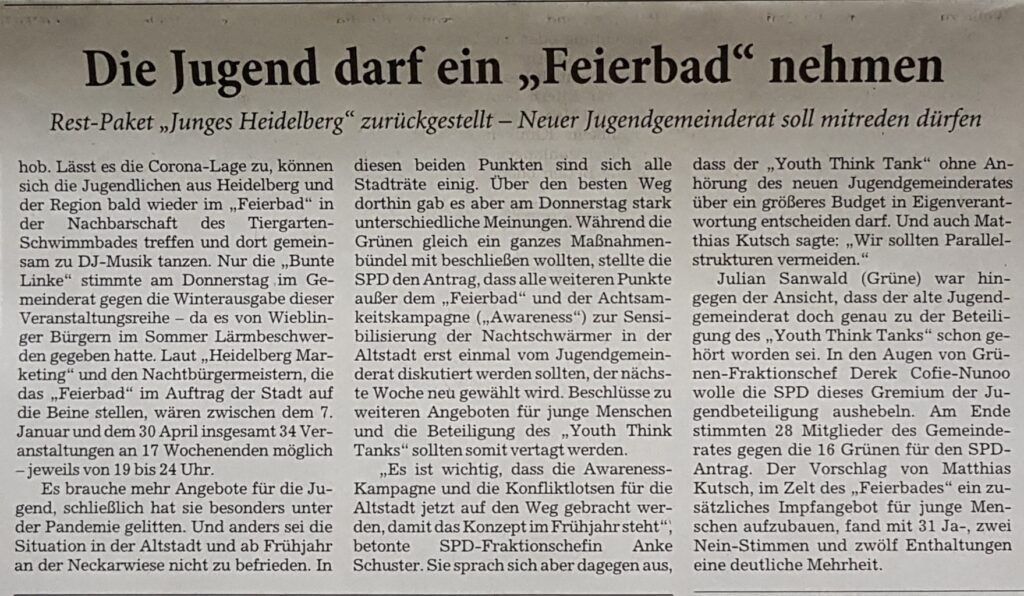 Auch die GAL hat für das Feierbad „Winteredition“ gestimmt, da es derzeit einfach zu wenig Angebote für Jugendliche in Heidelberg gibt.